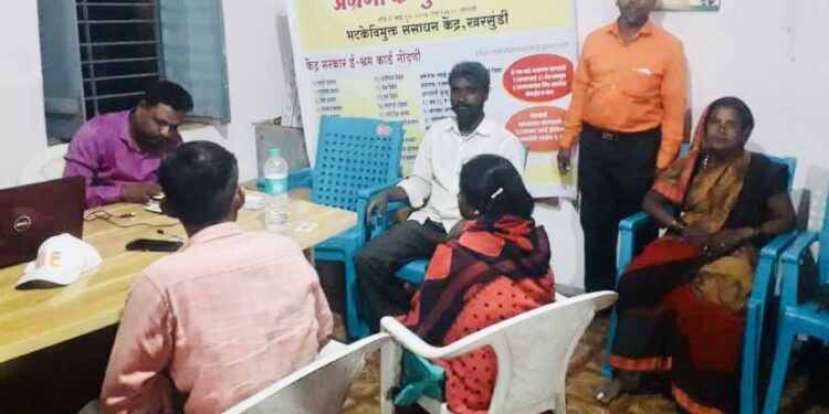 सांगली : वंचीत समुहातील, दारिद्रय रेषेखालील कुटुंब व भटके विमुक्त जमातीतील महिला व पुरुषांचा ई – श्रम कार्ड नोंदणीसाठी शिबीर आयोजित करण्यात आले होते. अग्रणी सोशल फौंडेशन विटा, ग्रामपंचायत मानेवाडी ता. आटपाडी व अग्रणी कम्युनिटी सेंटर खरसुंडी जि. सांगली यांचे संयुक्त विद्यमाने या शिबिराचे आयोजन करण्यात आले होते.