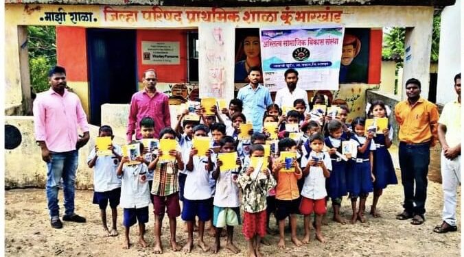 पालघर : शैक्षणिक साहित्यांपासून गरीब विद्यार्थी वंचित राहू नये या उद्देशाने अस्तित्व सामाजिक विकास संस्थेच्या वतीने आदिवासी भागांतील जि.प. शाळांमध्ये शैक्षणिक साहित्य वाटप करण्याचा उपक्रम सुरु केला आहे. जव्हार तालुक्यातील अती दुर्गम भागातील कौलाळे ग्रामपंचायत मधील कुंभारखांड येथील शाळेतील विद्यार्थ्यांना शैक्षणिक साहित्यांचे वाटप करण्यात आले.