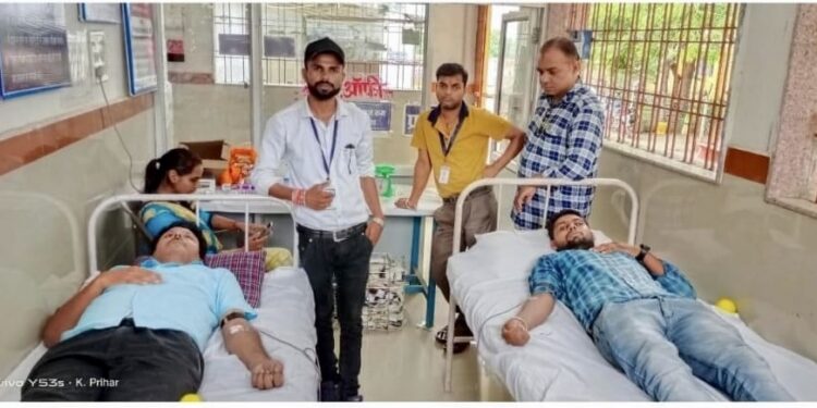 संजीत (मल्हारगढ़) मध्यप्रदेश : जिले में रक्त की कमी ना हो, सभी को पर्याप्त मात्रा में रक्त उपलब्ध हो इसी उद्देश्य को लेकर बि.आर. फाउंडेशन आपदा प्रबंधन समिति द्वारा ग्राम संजीत में स्वैच्छिक रक्तदान शिविर का आयोजन किया गया । इस शिविर में युवा और महिलाओं ने हिस्सा लिया जिसमें २१ यूनिट रक्तदान हुआ ।