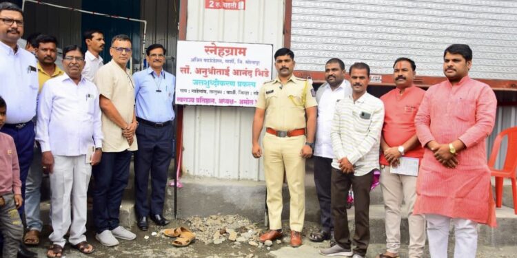 बार्शी : स्नेहग्राम व स्वराज्य प्रतिष्ठान यांच्या वतीने बार्शी तालुक्यातील गाडेगाव येथे उभारलेल्या अनुश्रीताई आनंद भिडे जलशुद्धीकरण प्लांटचे लोकार्पण स्नेहालय संस्थेचे अध्यक्ष संजयभाऊ गुगळे व प्रिसिजन कंपनीचे जनसंपर्क अधिकारी माधवदादा देशपांडे यांचे हस्ते करण्यात आले.