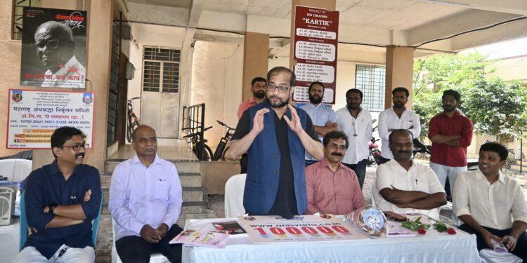 सांगली : अंधश्रद्धा निर्मूलन समितीच्या कार्यकर्त्यांशी जेष्ठ पत्रकार निखिल वागळे यांनी संवाद साधला. यावेळी अंधश्रद्धा निर्मूलन वार्तापत्राच्या वेबसाईटने एक लाख वाचकांचा टप्पा पार केल्याच्या फलकाचे अनावरण तसेच अंनिस वार्तापत्र च्या मे २०२३ अंकाचे प्रकाशन वागळे यांच्या हस्ते करण्यात आले.