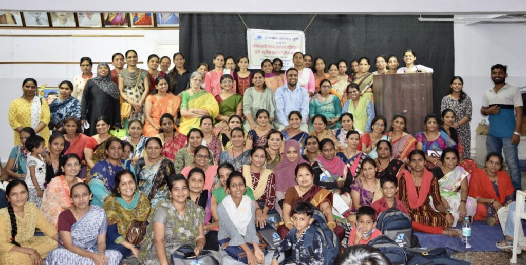 पुणे : कोविडमध्ये एकल झालेल्या महिलांसाठी निर्माण संस्थेच्या वतीने कायदेविषयक कार्यशाळा कामगार श्रमिक भवन मनपा येथील सभागृहामध्ये संपन्न झाली. या कार्यशाळेमध्ये १२०हून अधिक एकल महिला उपस्थितीत होत्या. भारताचे संविधानाचे प्रस्ताविकेचे वाचन करून या कार्यशाळेला सुरुवात करण्यात आली.