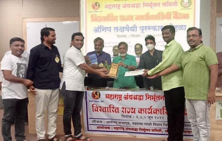औरंगाबाद : महाराष्ट्र अंनिसची राज्य कार्यकारिणीची बैठक नुकतीच औरंगाबाद येथे पार पडली. या बैठकीत शिवाजीनगर पुणे शाखेला लक्षवेधी पुरस्कराने गौरविण्यात आले. शाखेने संघटनेच्या कामासाठी मोठया प्रमाणात निधी संकलन केल्याने हा पुरस्कार देण्यात आला.