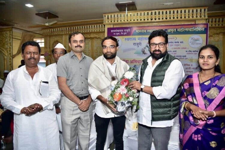 पुणे (जुन्नर) : राजुरी ग्रामपंचायतीच्या वतीने आयोजित केलेल्या स्वातंत्र्याचा अमृत महोत्सव या कार्यक्रमात संकल्प संस्थेचा विशेष सामाजिक योगदानाबाद्दल सन्मानचिन्ह देऊन गौरव करण्यात आला. जुन्नर तालुक्याचे आमदार अतुल बेनके यांच्या हस्ते संस्थेचे अध्यक्ष कलीम पटेल व उपाध्यक्ष जीलानी पटेल यांनी हा पुरस्कार स्वीकारला.