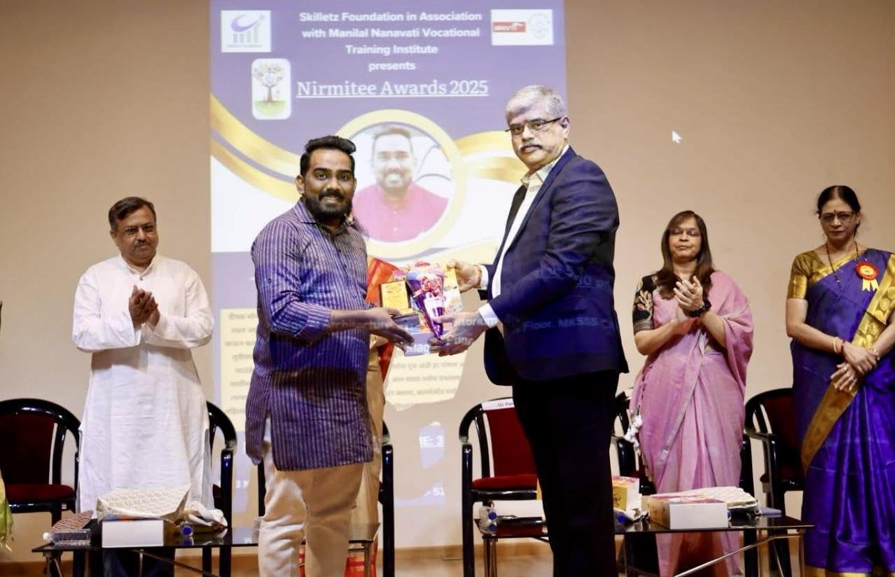 पुणे : स्किलेट्झ फाऊंडेशन आणि महर्षी कर्वे स्त्री शिक्षण संस्थेचे MNVTI यांच्या संयुक्त विद्यमाने आयोजित निर्मिती पुरस्कार 2025 सोहळ्यात भाकर फाऊंडेशनचे अध्यक्ष ॲड. दिपक सोनावणे यांना प्रतिष्ठित पुरस्काराने सन्मानित करण्यात आले. कार्यक्रमाचे प्रमुख अतिथी सावित्रीबाई फुले पुणे विद्यापीठाचे प्र-कुलगुरू डॉ. पराग काळकर यांच्या हस्ते हा पुरस्कार प्रदान करण्यात आला.