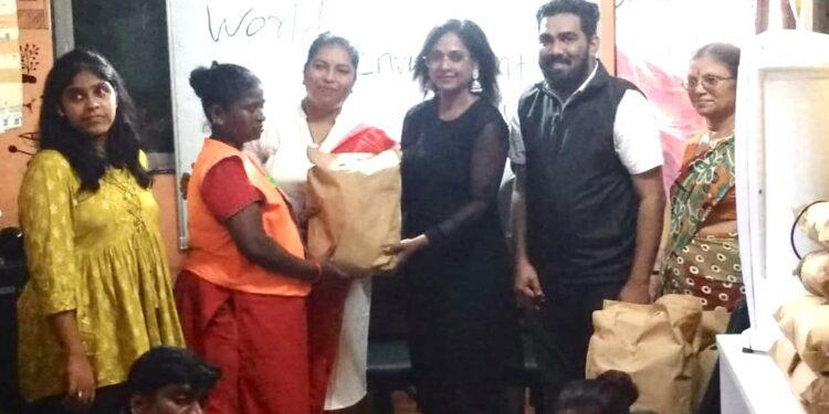 मुंबई : जागतिक पर्यावरण दिनानिमित्त गोरेगाव पश्चिम येथील भगतसिंग नगर, लक्ष्मी नगर, इंदिरा नगर परिसरातील साफसफाई करणाऱ्या कामगारांचा भाकर फाउंडेशनच्या वतीने सत्कार करण्यात आला. पर्यावरणाचे खऱ्या अर्थाने रक्षण करणारे सफाई कामगार असतात त्यांच्या या कामाची दखल प्रत्येकाने घेतली पाहिजे म्हणून महाराष्ट्राची लावणी सम्राज्ञी, अभिनेत्री मेघा घाडगे यांच्या हस्ते या सफाई कामगारांना भेटवस्तू देऊन सत्कार करण्यात आला असे भाकरचे अध्यक्ष दीपक सोनावणे यांनी सांगितले.