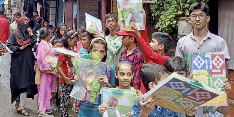 मुंबई : OYA फाऊंडेशन आणि भाकर फाऊंडेशन यांच्या संयुक्त विद्यमाने गोरेगाव पश्चिम येथील भगतसिंग नगर, इंदिरा नगर, लक्ष्मी नगर आणि नया नगर येथील १५० गरजू विद्यार्थ्यांना दोन टप्प्यात शैक्षणिक साहित्याचे वाटप करण्यात आले. सोबत मानसिक आरोग्याच्या दृष्टीने खेळ आणि गाण्यांचा कार्यक्रम आयोजित करण्यात आला.